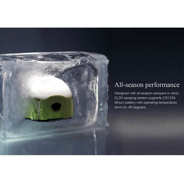 Designed with all-season campers in mind, the CL20 camping lantern ensures optimum performance in all conditions. The premium neutral white LEDs along with its exclusive multifaceted globe provide 165 lumen anti-glares light from AA or CR123A batteries. The CL20 is also equipped with a red map light, built-in hanging loop and magnets and for hang-anywhere functionality.