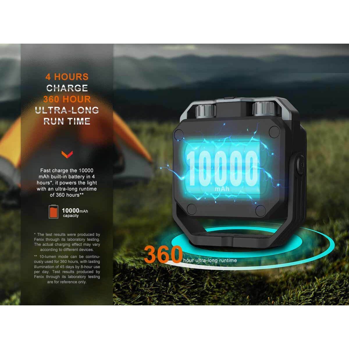 The Fenix CL28R has a handle that can be rotated 360°, with both a magnetic mount and a tripod mount. The camping lamp is compact and light, yet toughly constructed with IP66 rating for water resistance and drop resistance up to 1.5 meters.
