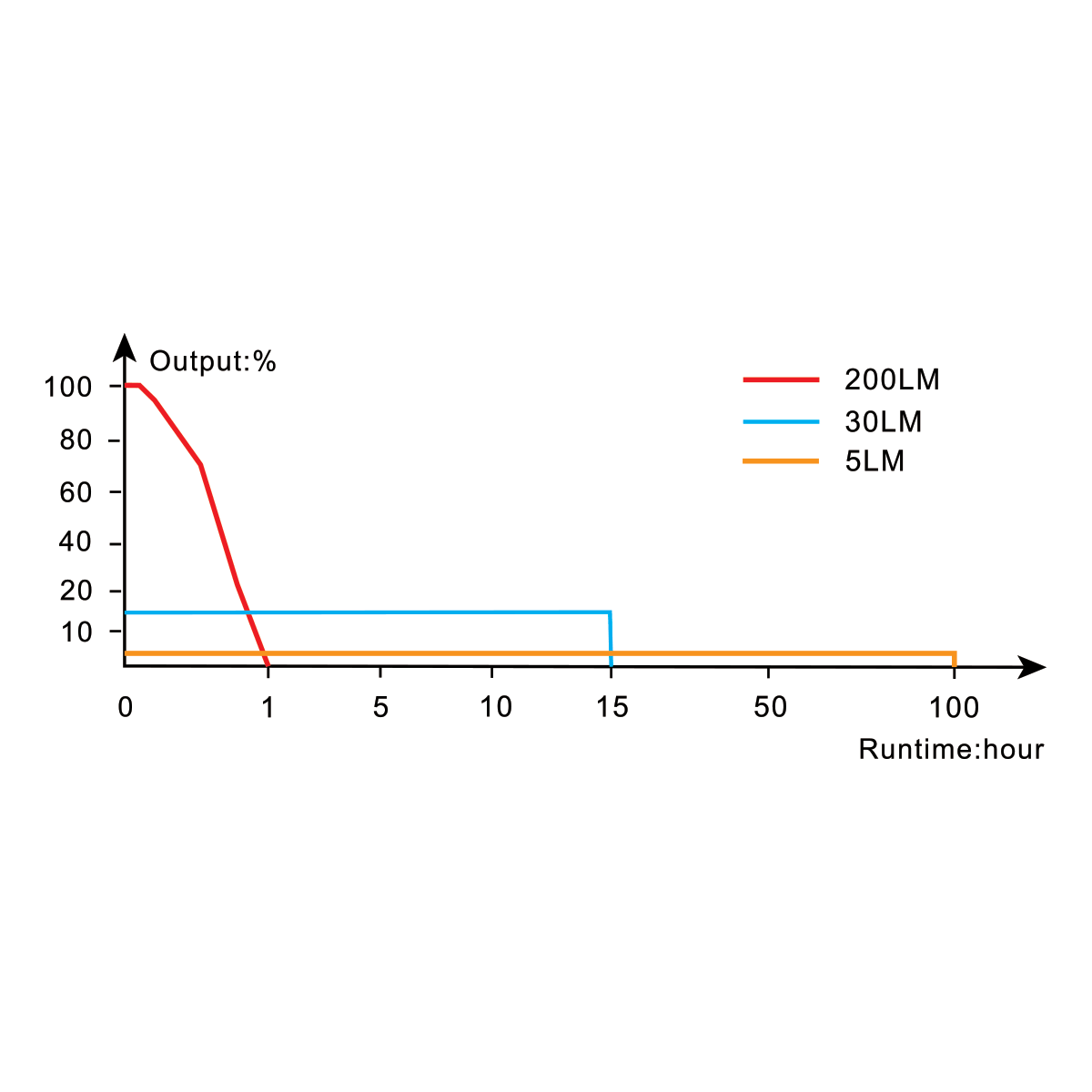 - Light modes: Three brightness levels