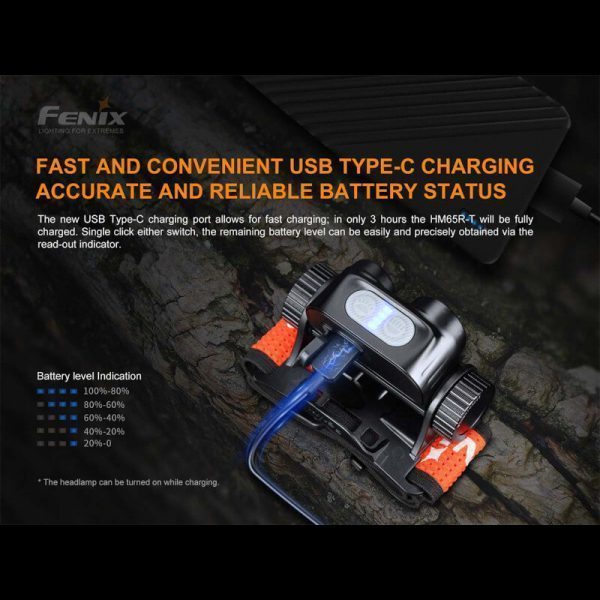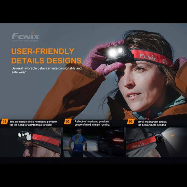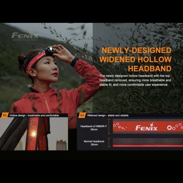 Fenix HM65R-T is an updated version of the bestseller HM65R, with better effect and adaptation for runners and exercisers. Just like the HM65R, this headlamp also has individually adjustable spot and flood lights, but with Luminus SST40 LED lamps that deliver up to 1500 lumens. The headband is also completely new, with a patented design that breathes better, with high comfort and safety. The included 3500 mAh battery is rechargeable via USB-C and also includes a battery level indicator. The weight of the HM65R-T is slightly lower (91 grams excl. battery) and the headlamp is IP68-rated with shock and water resistance up to 2 meters. HM65R-T is a perfect headlamp for runners, exercisers and others who want to move freely outdoors.