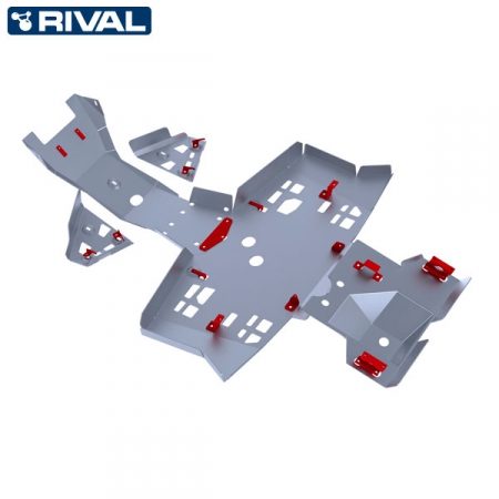 Rival full skid plate kit in aluminium (5052-H32), thickness 4 mm. Includes full frame skid plate set, front & rear CV Boot Guards. Easy to install. Bolts to existing holes on the undercarriage. Hardware and Installation Instructions Included.