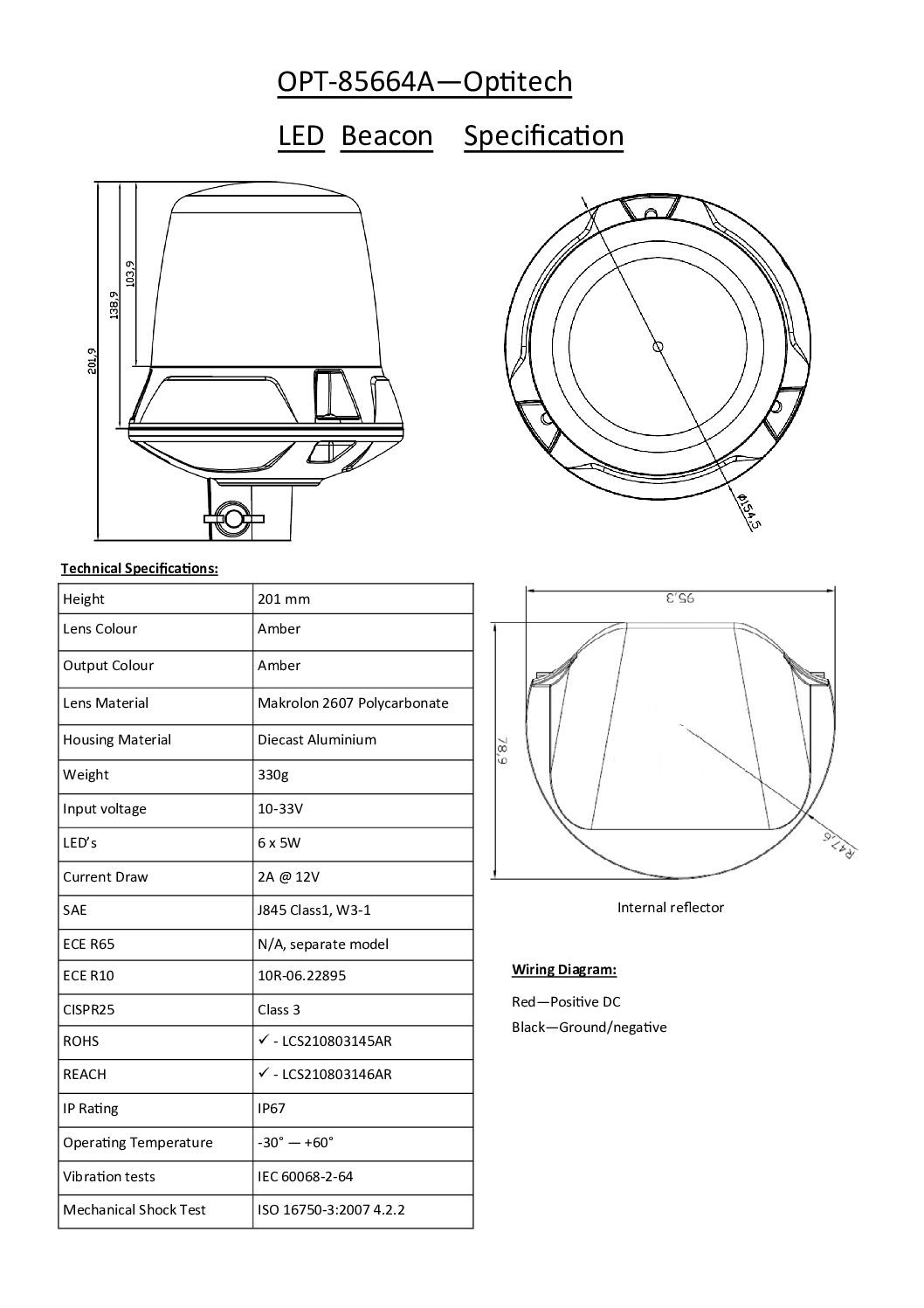 Vision X Optitech LED beacons are engineered to produce smooth, highly visible rotating patterns suitable for many different applications. This has been achieved through a proprietary reflector optic in combination with 6 x 5 watt high power LEDs.