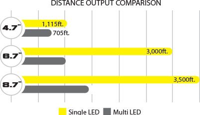 Single LED CG2 Light Cannons take lighting to uncharted territory with incomparable distances. The industry-leading Luminous Big Chip LED and Iris Reflector throws a violent blast of light that penetrates the night up to 3,500 feet. If you need superior distance from your lighting, this is the solution.