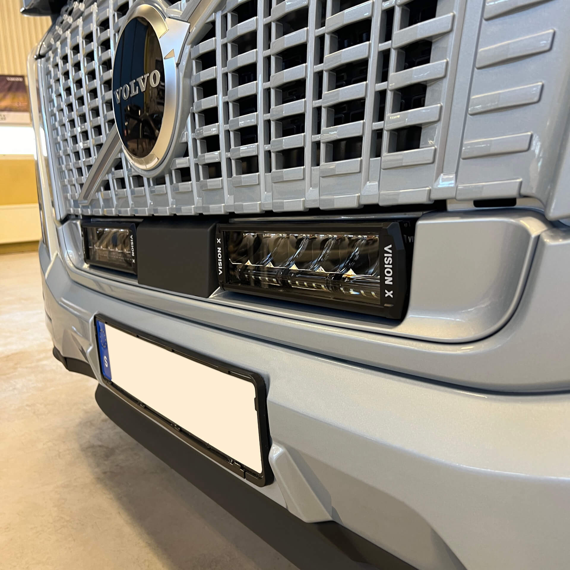 Vehicle Specific LED AUX Light kit from Vision X for Volvo FH Aero / FH16 Aero lower grille, year 2024 and newer. With an integrated and secure installation, that does not affect fuel consumption, radio or other sensors.
