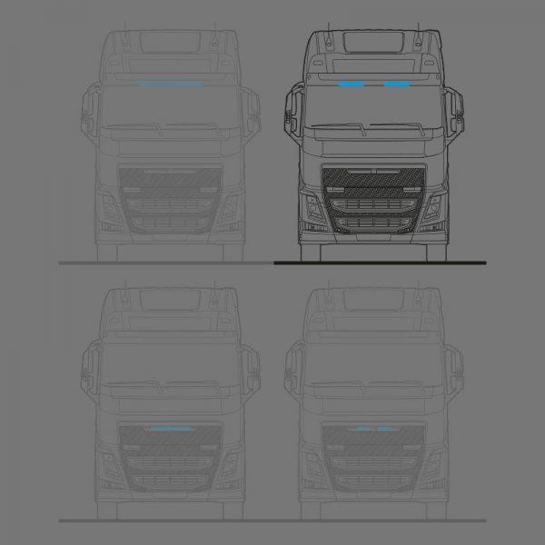 Vehicle Specific LED AUX Light kit from Vision X for Volvo Aero sunvisor, year 2024 and newer, FH / FH16 sunvisor, year 2014 and newer, and Volvo FM / FMX sunvisor, year 2021 and newer. With an integrated and secure installation, that does not affect fuel consumption, radio or other sensors.