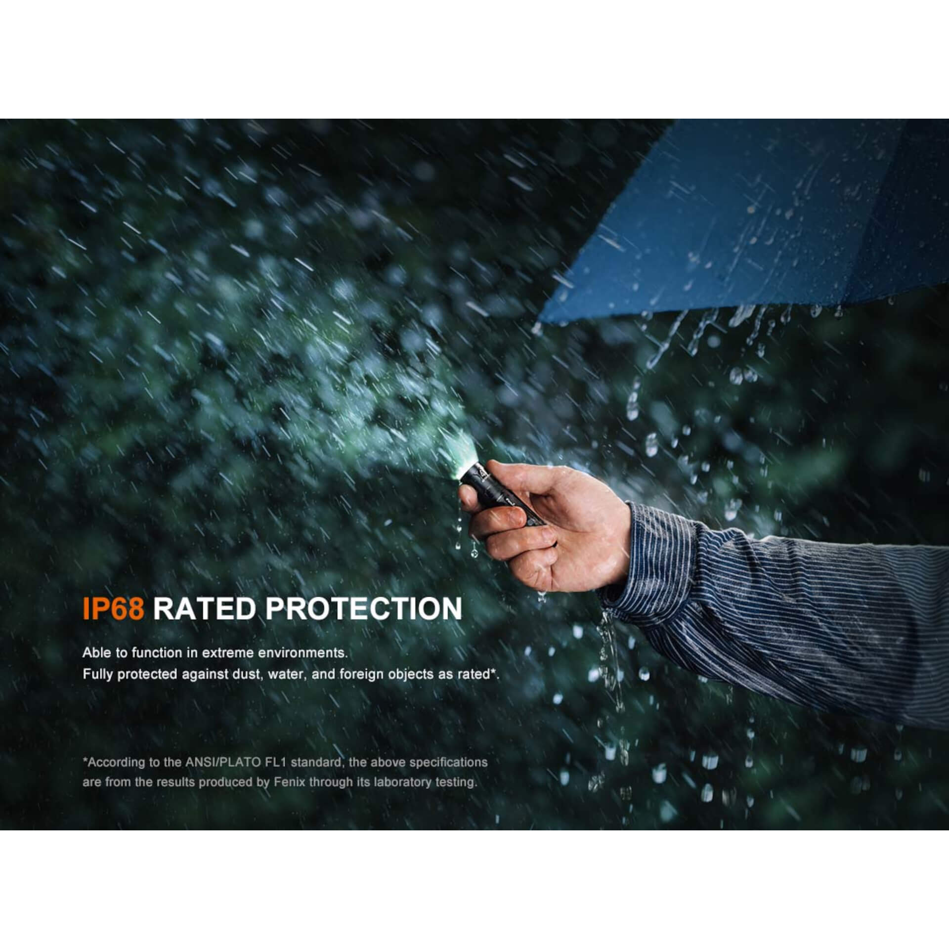 Fenix E12 V3.0 tål att hanteras ovarsamt, då den är tillverkad i flygplansaluminium med en härdad beläggning, polykarbonatlins och IP68-klassning för damm- och vattentäthet.