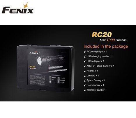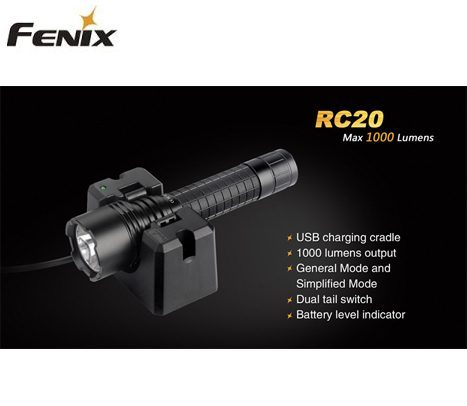 Vill du ha kraften i bästsäljaren TK35 i ett laddningsbart format? Då har vi den nya uppladdningsbara RC20. Fenix RC20 är den perfekta ficklampan för polisbilen, äventyrsbilen, lastbilen och i t.ex. lokaler där det är viktigt att ha ljus om strömmen går osv. Med en maxeffekt på otroliga 1000 lumen ur det kompakta formatet samt 5 olika ljus nivåer ned till 10 lumen så finns en ljusstyrka samt batteri tid som passar just dig.