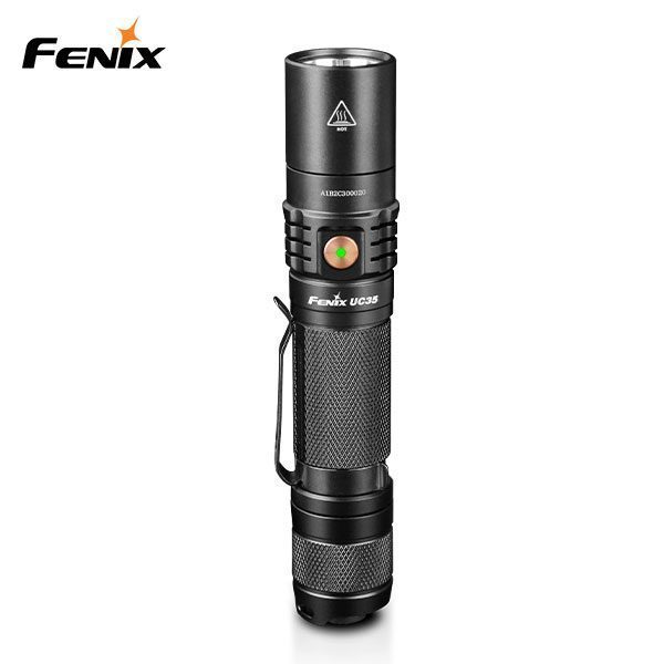 Fenix UC35 V2.0 är 2018 års uppgradering av den populära UC35. Uppdaterad med Cree XP-L HI V3 ger nu lampan ett ljus på hela 1000 lumen och en räckvidd på upp till 266 meter. Av- och påslag sker som tidigare via den akterplacerade knappen, men sidoknappen har uppdaterats till metall och har även fått en indikator för batteristatus inbyggt. Nytt är också Moonlight-läget, som ger ett svagt ledljus som räcker upp till otroliga 800 timmar på en laddning.