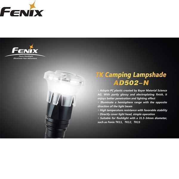 Ta med tilltalande ljus till campingen, tältet eller din RV (husbilen) med detta unika tillbehör. Fenix lampskärm omvandlar omedelbart din ficklampa till ett behagligt och mysigt ljus genom den frostade finishen.