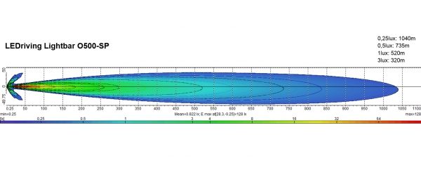 Ljusbilden är främst gjord för att kunna lysa långt vid låga montage på personbil, transportbil och lastbil med sin fokuserade ljusstråle och hela 450m räckvidd vid 1 lux eller 900m räckvidd vid 0,25 lux med ändå en relativt bra bredd på håll.