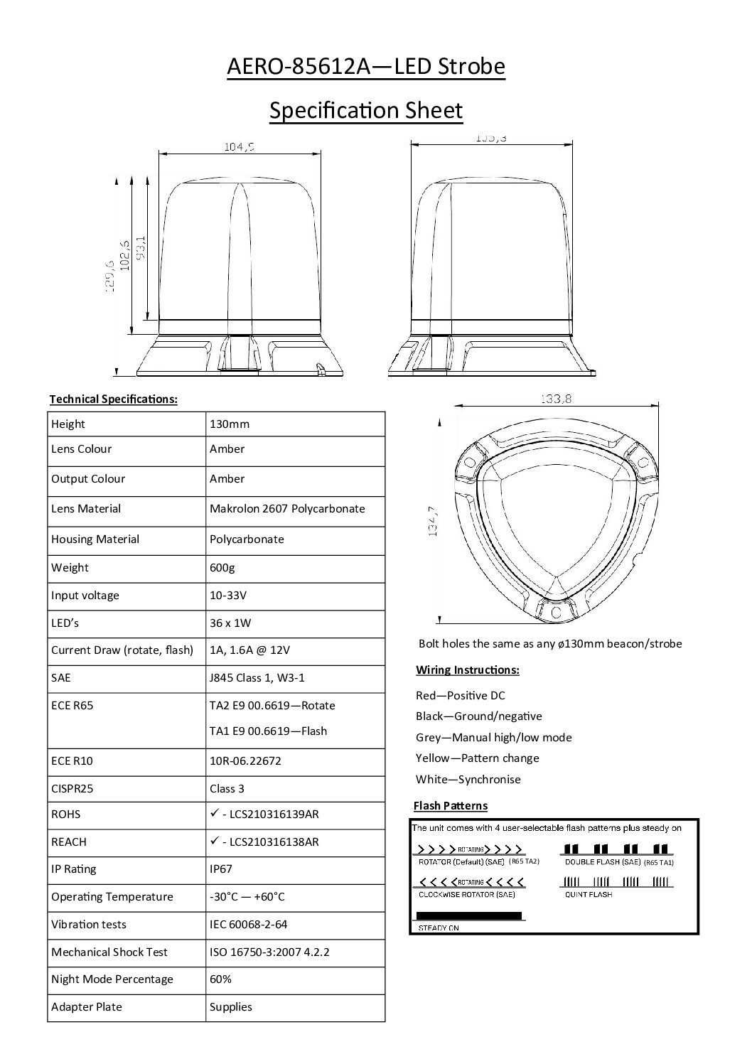 Märkning: ECE R65 Class 2, CISPR 25 Class 3, SAE Class 1