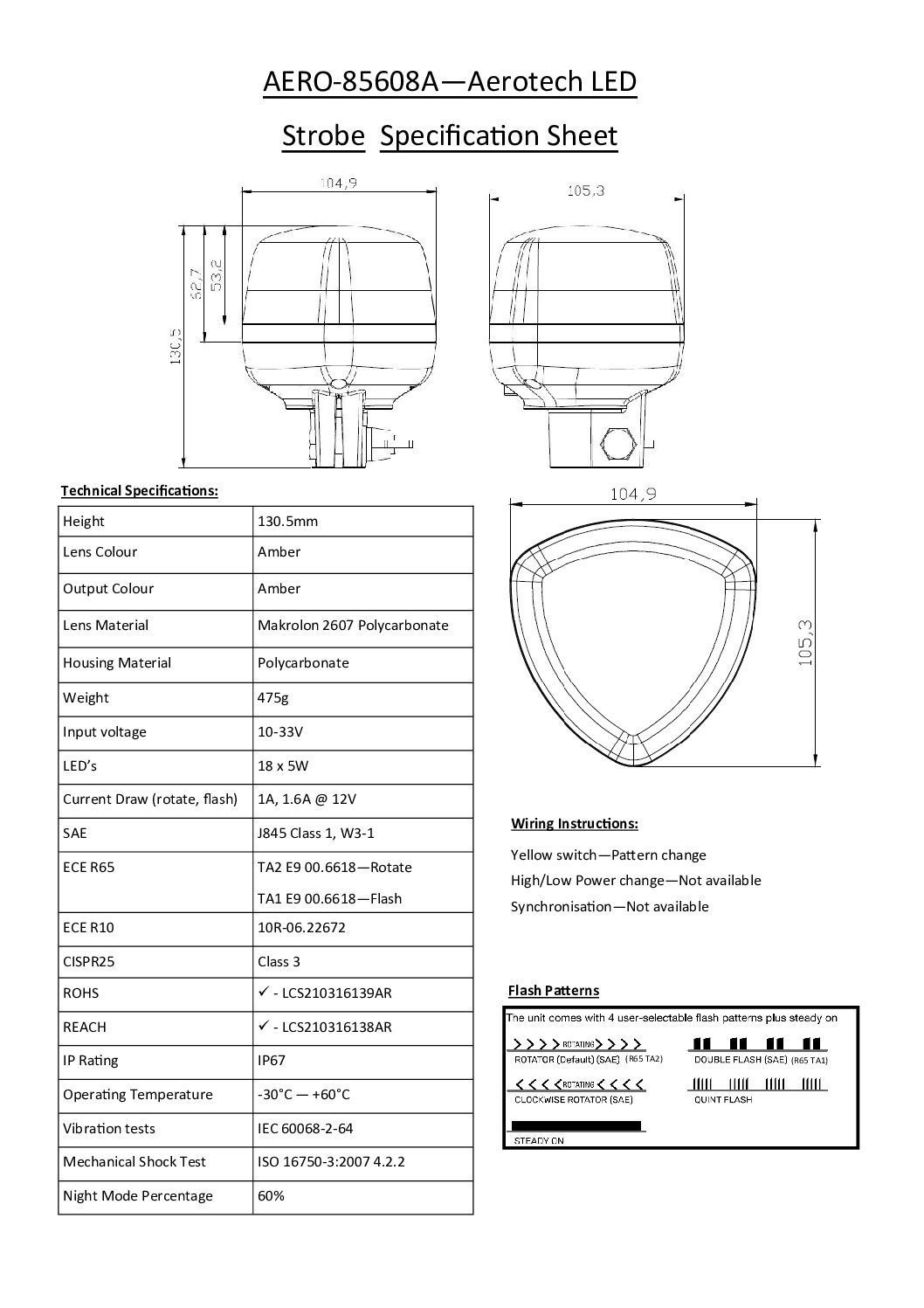 Märkning: ECE R65 Class 2, CISPR 25 Class 3, SAE Class 1